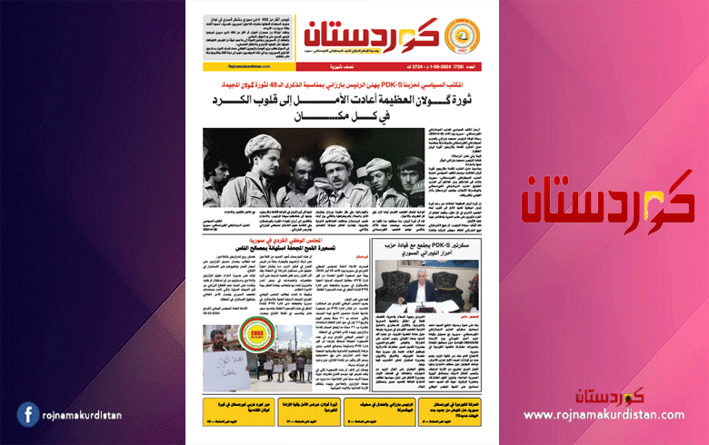 صحيفة كوردستان - العدد 729 2024-06-06 صدر العدد الجديد من كوردستان بالطبعة الورقية .. والموقع الالكتروني الخاص بالجريدة .. العدد 729 Download مفوضية الأمم المتحدة: أكثر من ثلاثة ملايين سوري عادوا إلى بلدهم بعد سقوط النظام الرئيس بارزاني يستقبل العالم الكوردي رشاد ميران ويهنئه بجائزة "بوشكين" في زيارة وفد المجلس الكوردي لإقليم كوردستان الديمقراطي الكوردستاني يدعم الكورد في باقي أجزاء كوردستان (قراءة وتحليل)