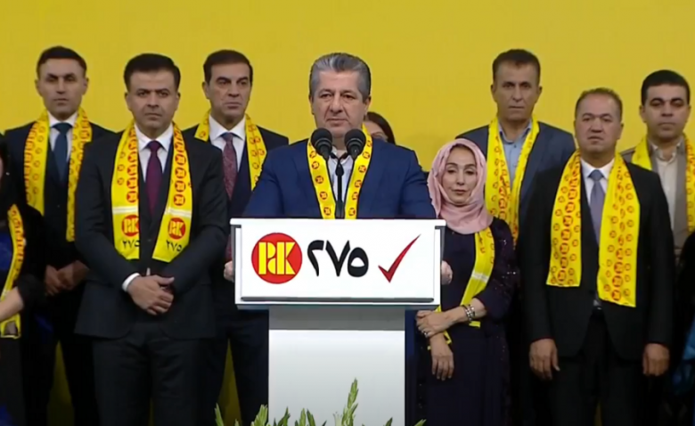 وخلال كلمته في مهرجان انتخابي أقيم بأربيل، دعا مسرور بارزاني جماهير الحزب إلى الاستعداد لـ "انتخابات أخرى وفوز كبير آخر للقائمة 275" والتوجه بقوة إلى صناديق الاقتراع، مشدداً على أن الحزب "يدافع عن الحقوق الدستورية لإقليم كوردستان والعراق بأكمله"، مؤكداً أن "الحزب الديمقراطي الكوردستاني هو الحزب الأول والأقوى على مستوى العراق". وحذر قائلاً: "طالما بقي الديمقراطي يجب ألا يخيل لأحد المساس بإقليم كوردستان".